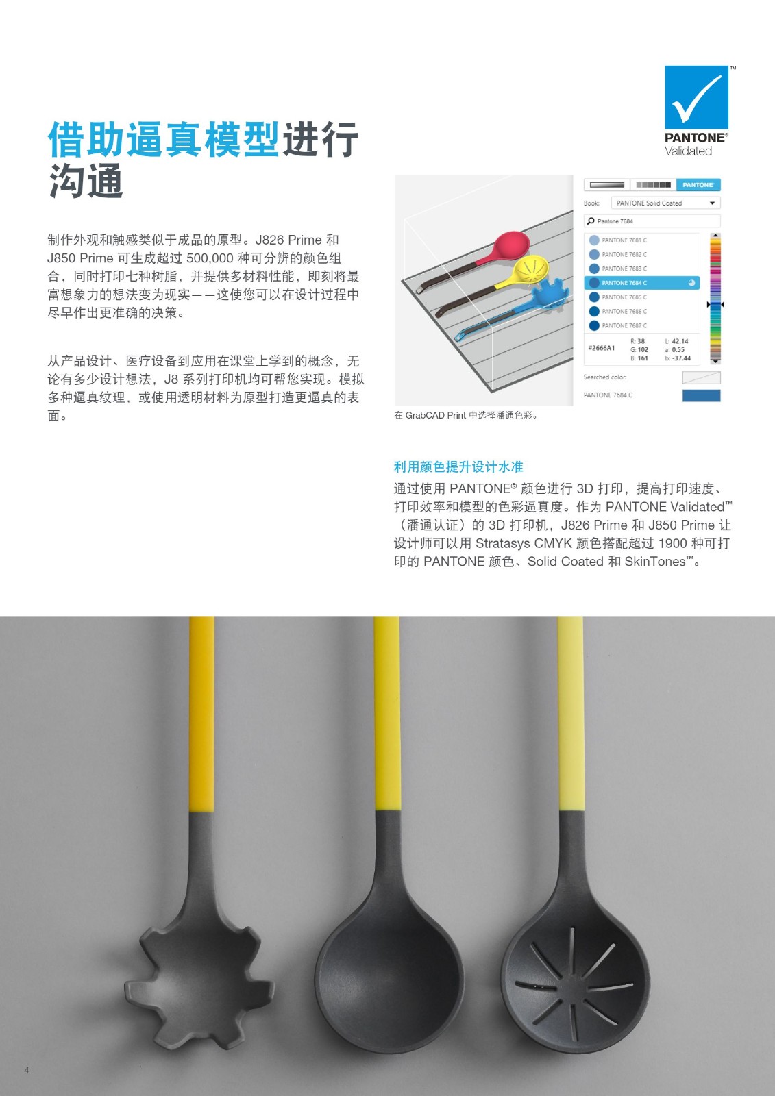 通過(guò)使用PANTONE顏色進(jìn)行3D打印,提高打印速度、打印效率和模型的色彩逼真度。作為PANTONE Validated"(潘通認(rèn)證)的3D打印機(jī),J826Prime和J850Prime讓設(shè)計(jì)師可以用Stratasys CMYK顏色搭配超過(guò)1900種可打印的PANTONE顏色、Solid Coated和SkinTones"。