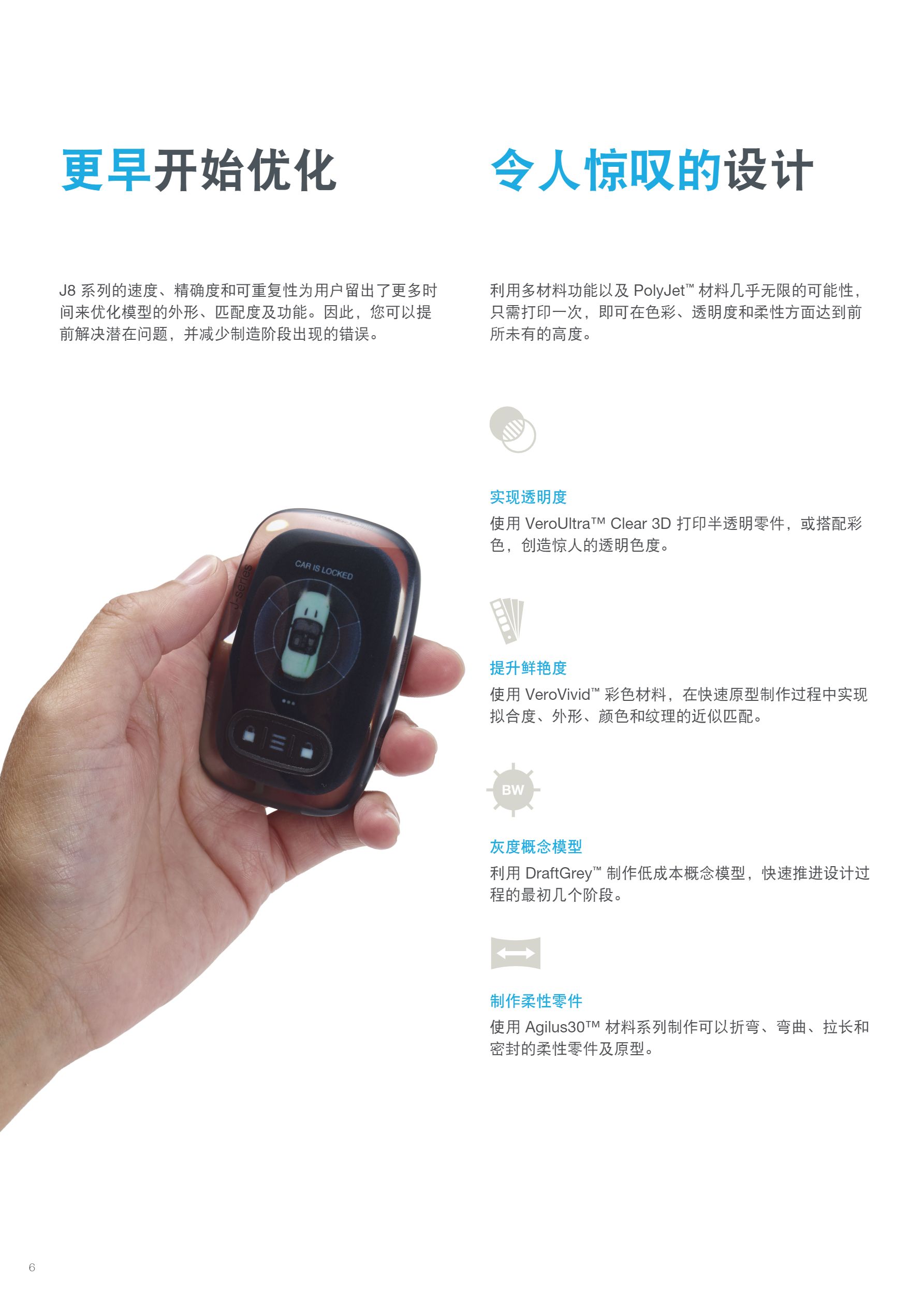 制作外觀和觸感類似于成品的原型。J850 Pro J850 Prime J826 Prime 可生成超過(guò)500,000種可分辨的顏色組合,同時(shí)打印七種樹(shù)脂,并提供多材料性能,即刻將最富想象力的想法變?yōu)楝F(xiàn)實(shí)一一這使您可以在設(shè)計(jì)過(guò)程中盡早作出更準(zhǔn)確的決策。