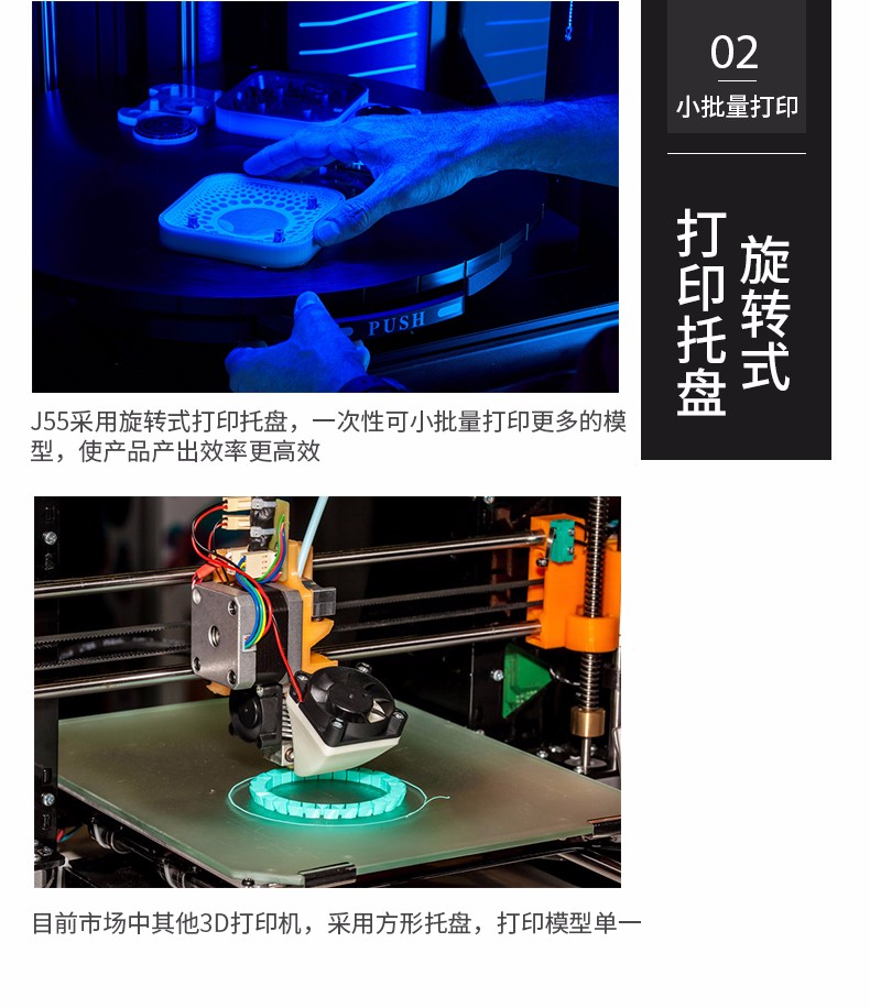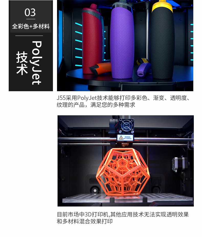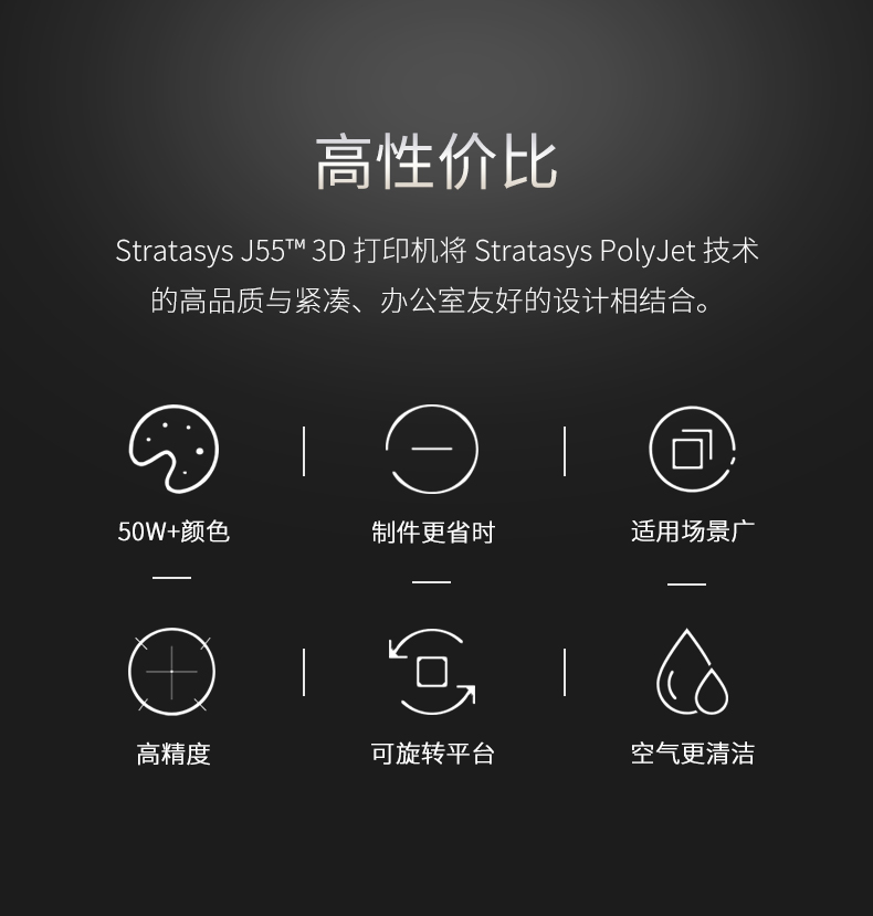 性能一:旋轉(zhuǎn)式打印平臺(tái),J55采用旋轉(zhuǎn)式打印平臺(tái),具有出色的表面光潔度和打印質(zhì)量,擁有多材料功能以及可用于工業(yè)和機(jī)械設(shè)計(jì)的材料配置,可以保證非常穩(wěn)定、一致的性能。性能二:超過500,000 種顏色組合J55可生成超過500,000 種可分辨的顏色組合,同時(shí)打印五種樹脂,并提供多材料性能。作為 PANTONE Validated? 認(rèn)證的 3D 打印機(jī),J55支持 Stratasys CMYK 顏色匹配超過1,900種可打印的 Pantone Solid Coated 和 SkinTones?,能顯著提高原型的打印速度、效率和色彩逼真度。無論您需要什么顏色和紋理,J55都能助您將最富想象力的想法變?yōu)楝F(xiàn)實(shí),在設(shè)計(jì)過程中盡早作出更準(zhǔn)確的決策。性能三:樣件幾乎無需后處理J55將 PolyJet 技術(shù)的高品質(zhì)與緊湊、辦公室適用的設(shè)計(jì)結(jié)合起來,可以一次打印多色部件。由其打印出的零件幾乎不需要后處理,不僅將材料浪費(fèi)降至最低限度,還大大節(jié)省了打磨和手工上漆的時(shí)間和工作量,使設(shè)計(jì)過程更加順暢,部件的品質(zhì)更加穩(wěn)定。