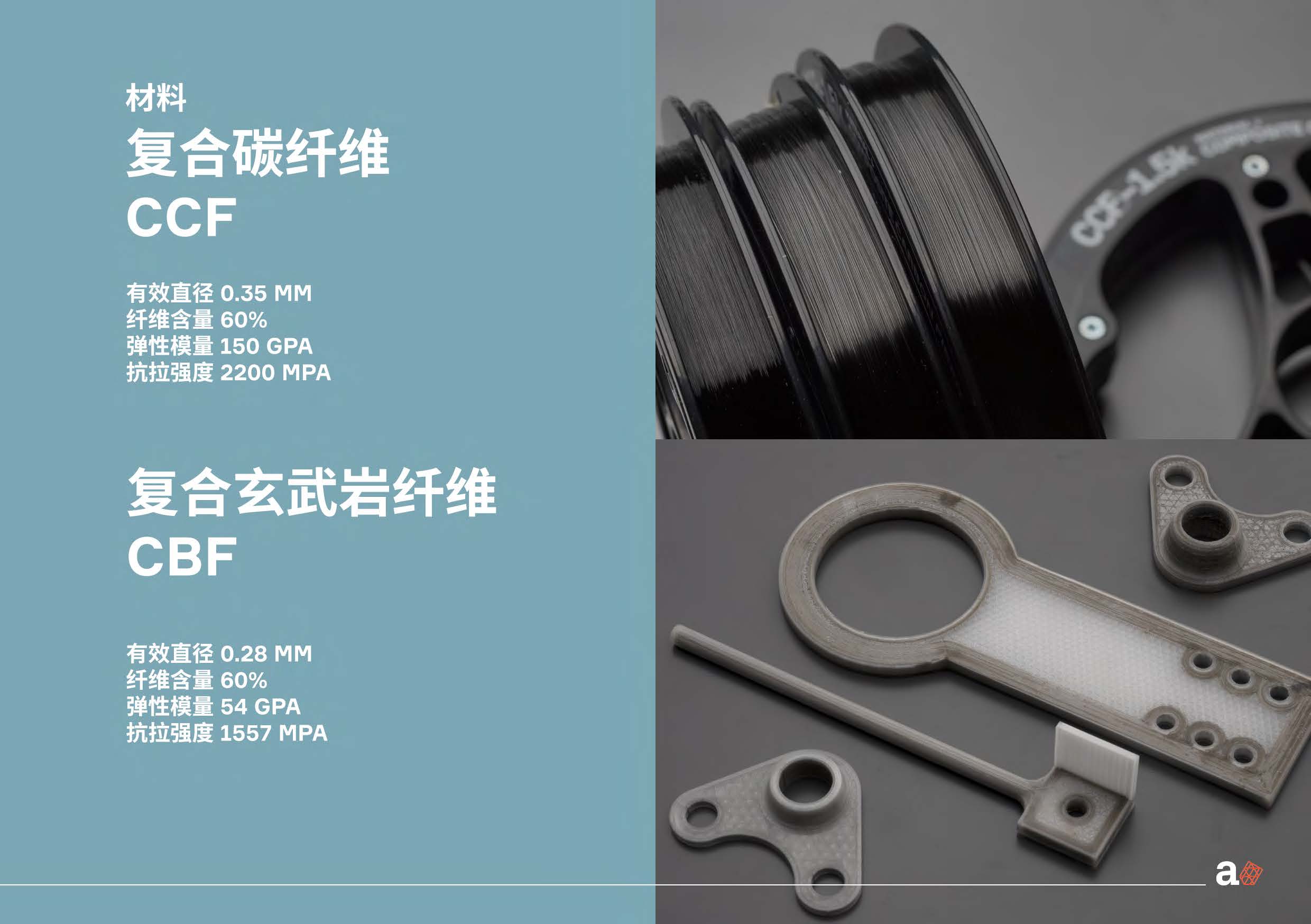 • 連續纖維類型:支持CCF-1.5k, CBF及第三方纖維,增強打印件的機械性能。