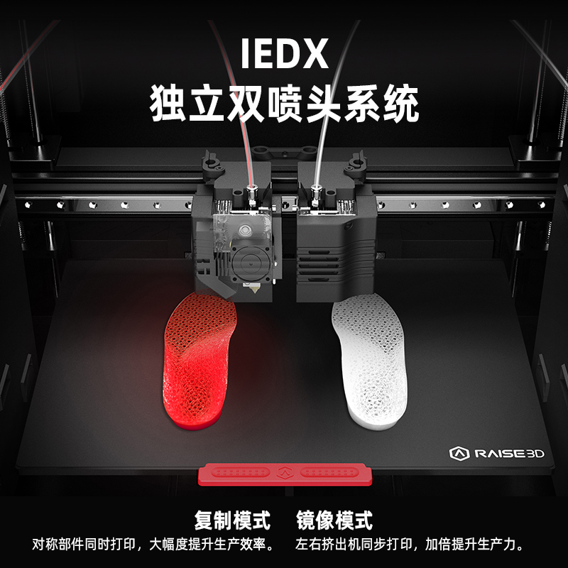 RAISE E2擁有IDEX單雙噴頭打印系統,更高效率,更快速度,支持鏡像打印,復制打印,自動平臺調整功能,遠程無限遙控,內置攝像頭隨時監控打印效果,RAISE E2讓3d打印變得更加簡單!RAISE E2全新一代3d打印機,重新定義高品質3d打印需求,為你展現前所未有的智能時刻,獨立雙噴頭,7寸觸摸屏,遠程遙控攝像頭,輔助偏移校準,隨時打印,隨時監控,安全便捷。