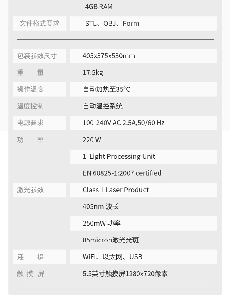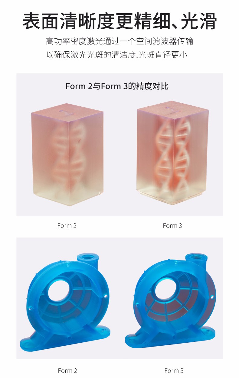 Form 3 將強大的立體光固化 (SLA) 技術(shù)搬到了桌面,僅需工業(yè)級 3D 打印機成本的一小部分,就可實現(xiàn)準確的高精度打印。Form 3 由高精度光學(xué)引擎驅(qū)動,其創(chuàng)造的打印件細節(jié)精美,表面處理效果極佳,比其他塑料 3D 打印技術(shù)的打印件更為光滑和精細。節(jié)省用于后處理工序的時間和開支,增加用于創(chuàng)造的時間。