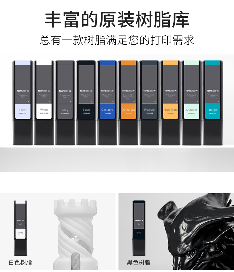在通用、高級和專業(yè)材料庫之間無縫切換。我們的內(nèi)部材料科學(xué)團隊正致力于研發(fā)新材料,以擴大我們的 3D 打印機的性能。我們的樹脂專為我們的打印機而設(shè)計,可提供具有光滑表面光潔度的功能性部件,其外觀、觸感、和工作效果都與最終產(chǎn)品如出一轍。